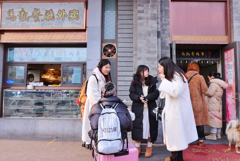 新京报记者从北京华天方面了解到,元旦期间,北京华天旗下的同和居、同春园、鼓楼马凯餐厅等多家老字号“一桌难求”。尤其是许多毗邻景区的餐厅,有的门店每天翻台达到8至10次,营收同比增长超50%。例如位于什刹海景区的鼓楼马凯餐厅,随着元旦假期到来,加上什刹海冰场开放,成为北京的热门打卡地之一。前厅经理张雪肖介绍,元旦假期每天中午,散座每桌翻台都在4至5次,全天每桌翻台8至10次。餐厅在各大平台推出的“新年剁椒鱼头双人套餐”和“烤鸭超值3人套餐”受到顾客欢迎,外卖窗口的羊肉串、糖饼等特色外带美食也销售火爆。据华天大数据平台显示,鼓楼马凯餐厅的外卖窗口羊肉串每天要卖出超千串。